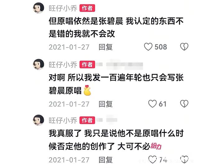 旺仔小乔称原唱仅是张碧晨。