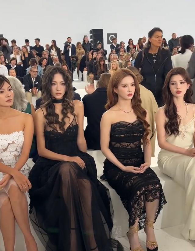 之前在米兰看秀,她跟哈尼克孜、刘些宁坐一块,镜头扫过来,她的脸一点不崩,甚至很有自己的味道。跟95花里颜值算顶级的周也拍视频,站在旁边也完全没被艳压,因为个子高,反而显得气场更强。
