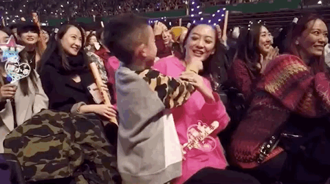 然后应采儿开始互动,台下各种跳舞,陈小春又无奈又宠溺的笑了起来。